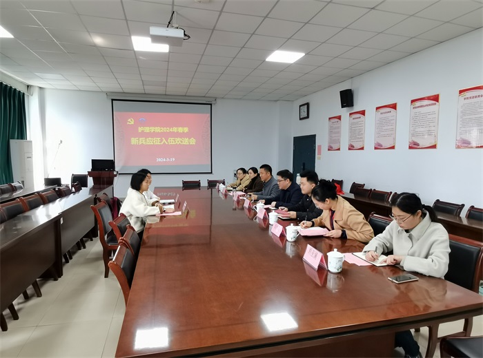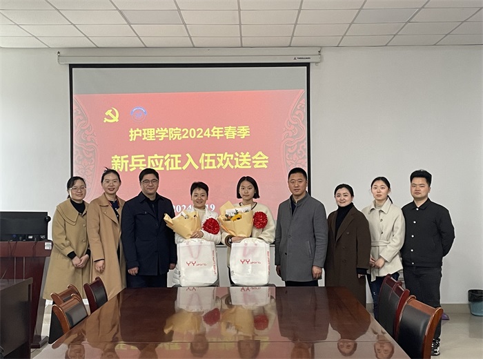 薛磊对通过层层选拔考核的两名入伍女兵表示热烈祝贺,为她们的勇敢坚定选择“点赞”,向为征兵工作辛苦付出的相关部门和工作人员、给予理解支持的新兵家属表示感谢,并介绍了参军入伍的相关政策。他表示,学院上下将积极与入伍同学保持联系,做好后续毕业及休复学等相关服务工作,并关注同学们在部队的表现情况,希望入伍同学坚定从军报国的理想信念,听党话、跟党走,将小我融入大我,用自己的实际行动为部队、母校和家乡交上满意答卷;要严格要求自我,掌握过硬本领,锤炼钢铁意志,提升综合素质,增强保家卫国能力;要将所学知识和专业技能熟练运用到部队日常医护保健服务中去,为官兵的健康保驾护航,展示安医大护理学子风采。